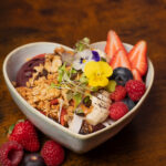 Desayuno clásico. Huevos revueltos con cebollino, tostada semiintegral de masa madre,