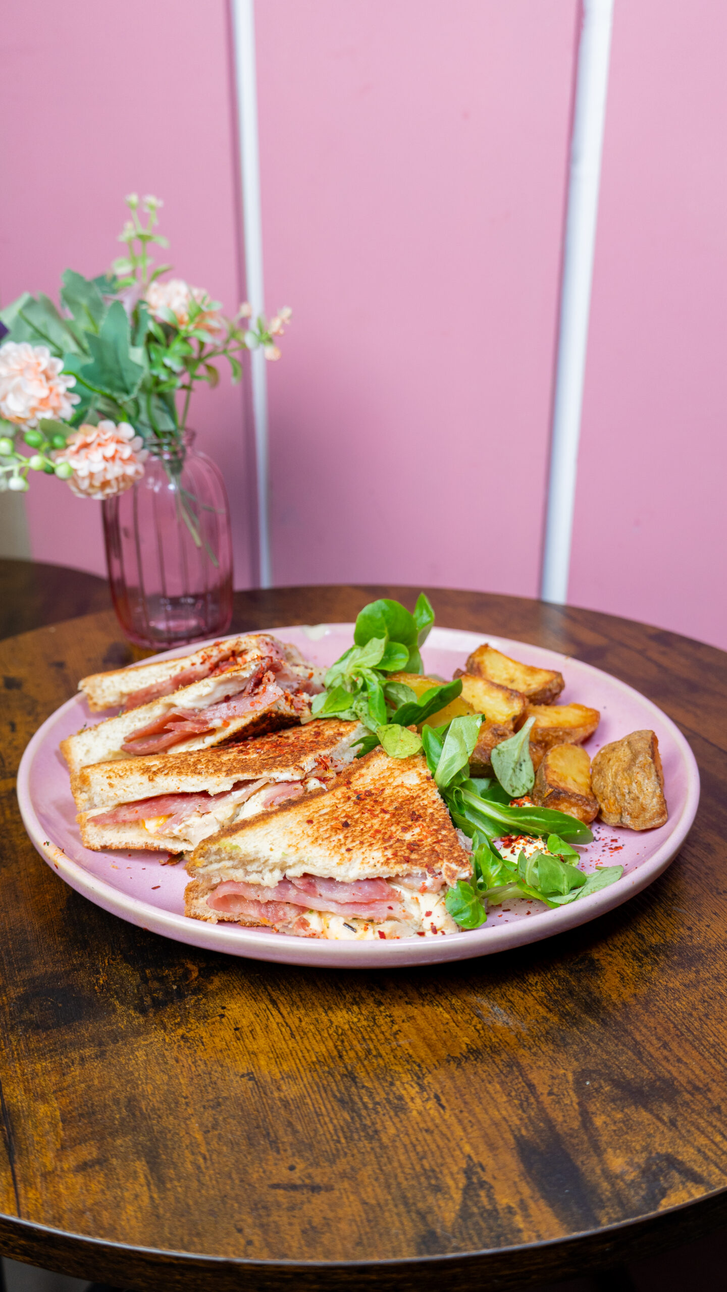 de tomate natural y ‌bacon. Acompañado de patatas al estilo Molly.‌