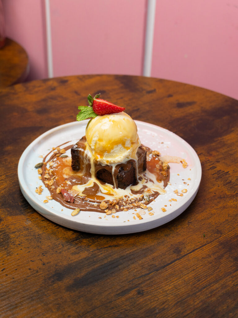 BISSFUL BROWNIE C R A V I N G S _____________________________________ Brownie de chocolate con bola de helado de vainilla y salsa de caramelo.