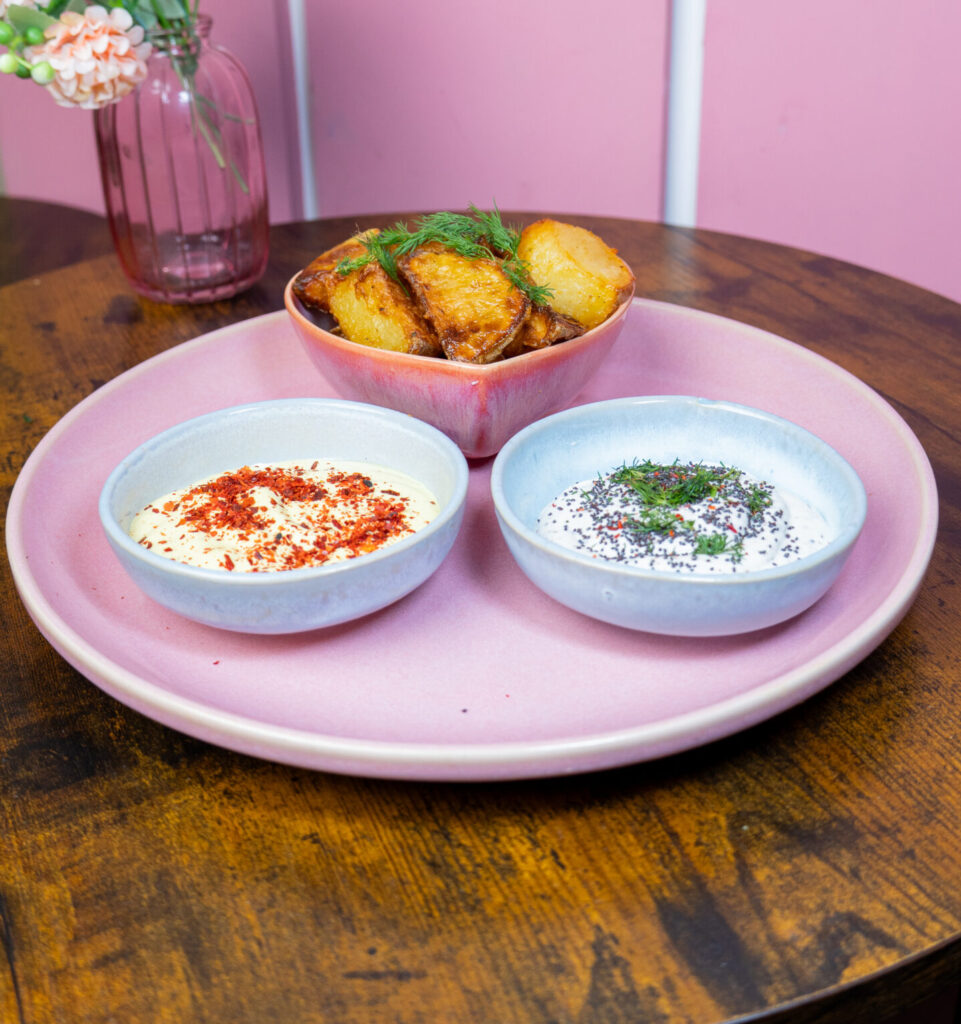 Bowl Fries Starters _____________________________________ Patatas estilo Molly con salsas.